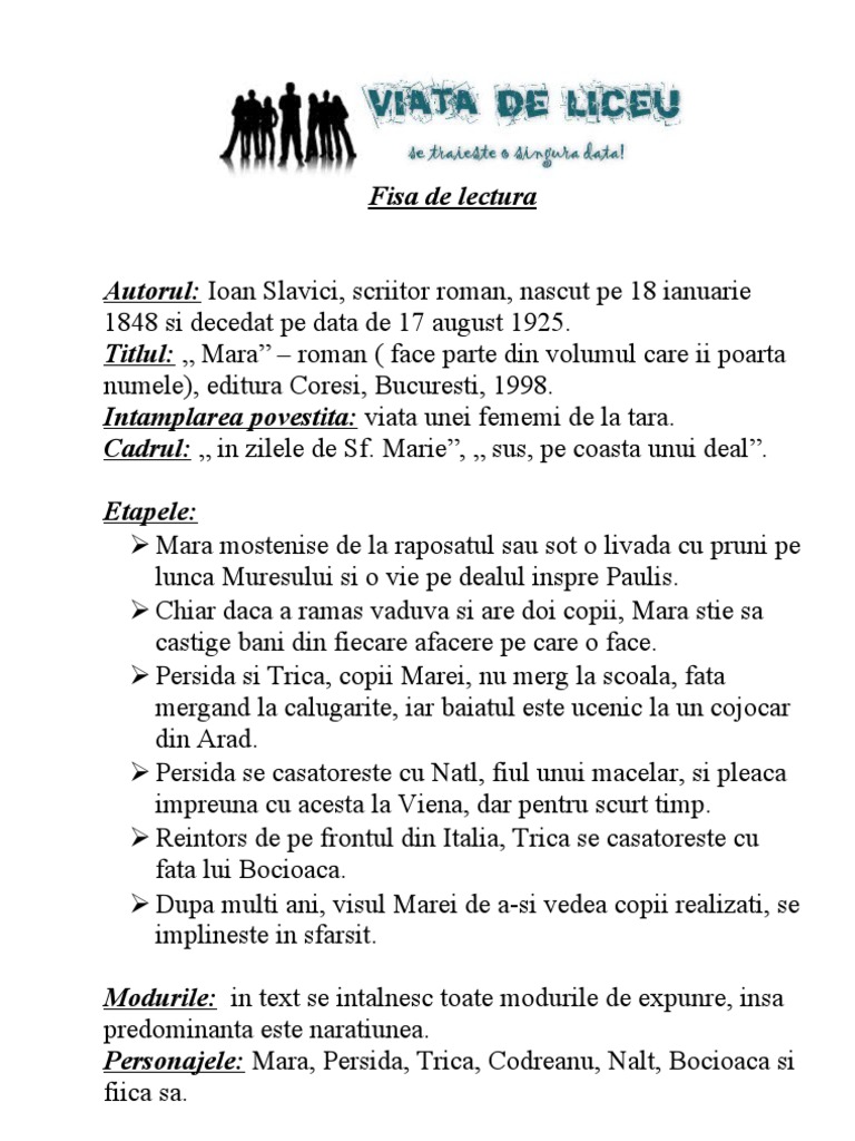 Fisa De Lectura Mara