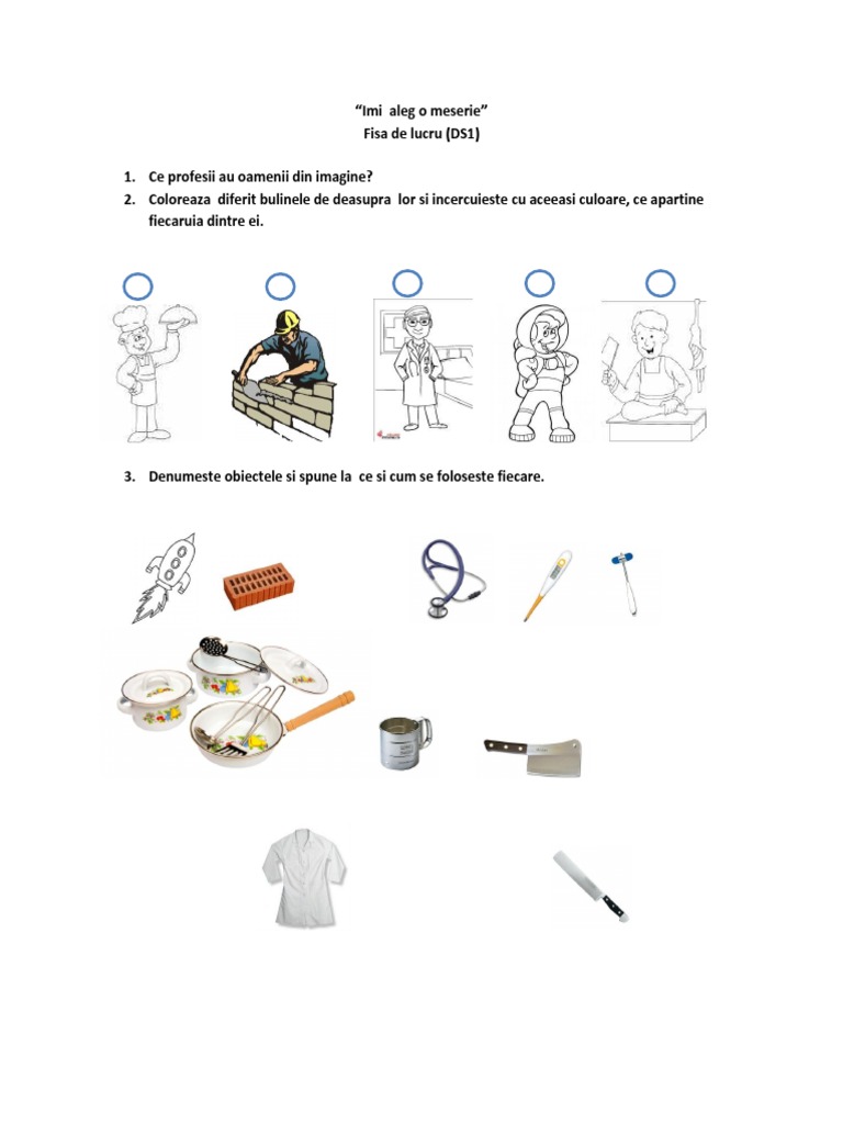 Fise De Lucru Gradinita Fise De Luctru Cu Meserii Pentru Copiii De Gradinita