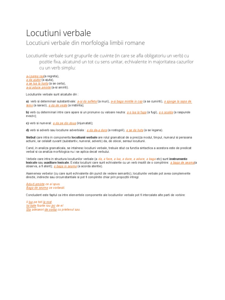 Exemple De Locuţiuni Verbale