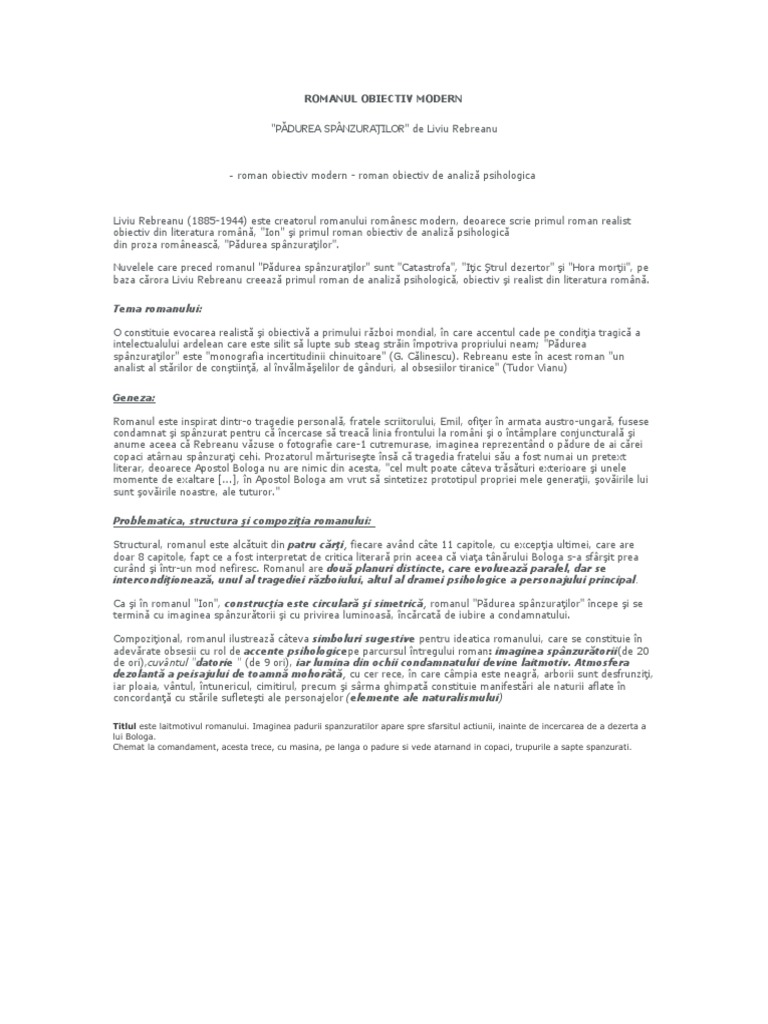 Padurea Spanzuratilor Rebreanu L Carte