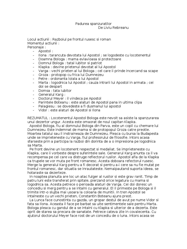 Liviu Rebreanu Padurea Spanzuratilor Rezumat