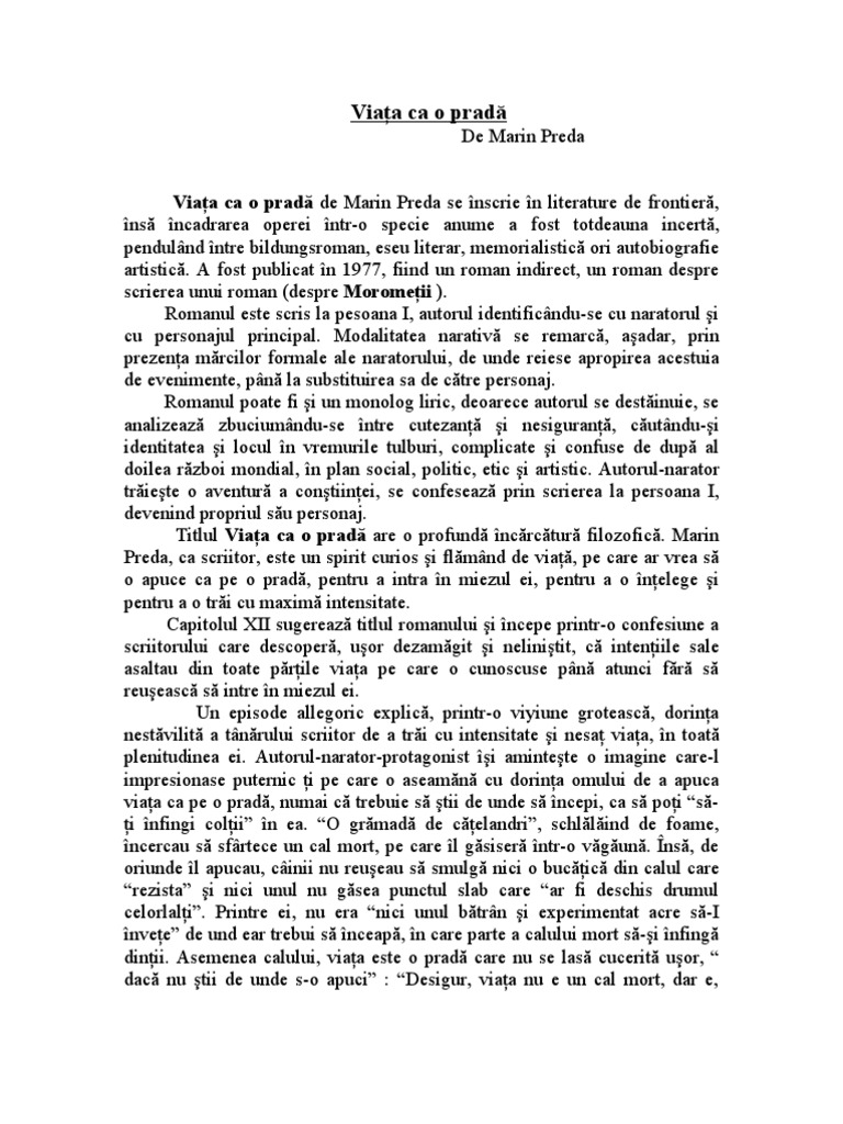 Referat Marin Preda Viata Ca O Prada 329242 Graduo